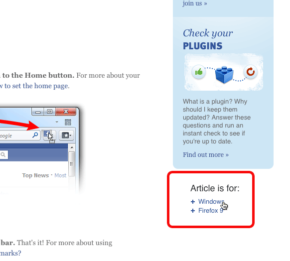 At the bottom of the right-hand sidebar we have some controls labeled "Article is for:" You can switch that to windows and the url of the article will change. You can then send that url to your friend.