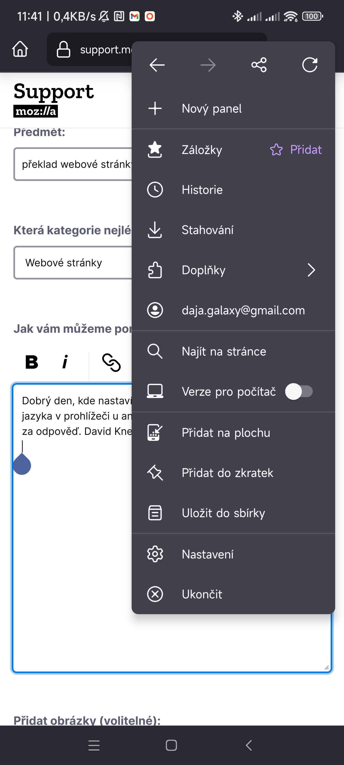 Dobrý den, kde nastavím překládání stránek do Českého jazyka v prohlížeči u androidu, nějak jsem na to nepřišel, děkuji za odpověď. David Kneř.