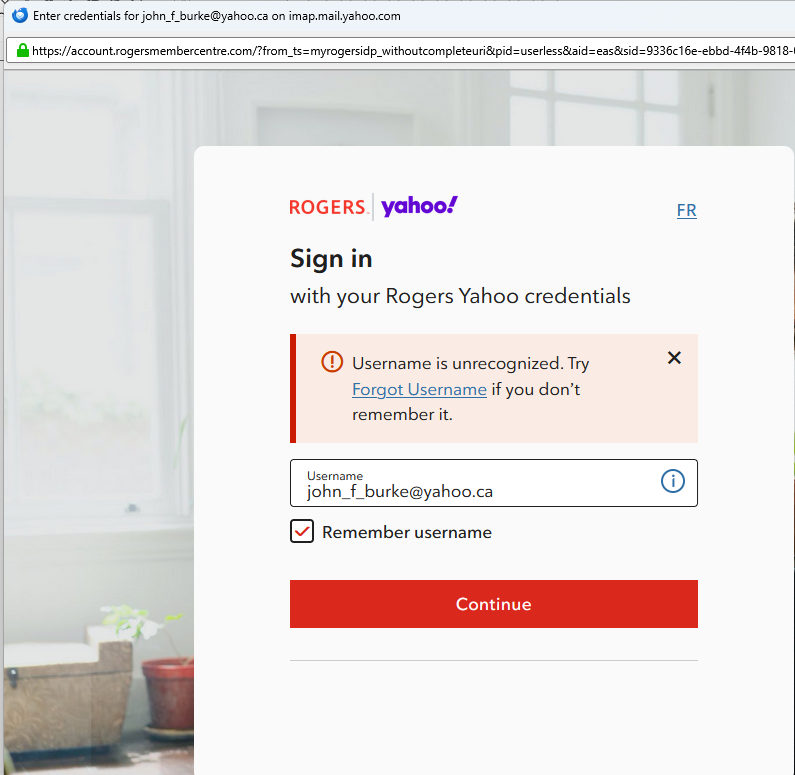 When I try to get my email, a Rogers window now pops up and want me to sign in, but it does not recognize my email address, and when I follow the steps, it says my email address does not exist. I can still get my email from the Web though just not through Thunderbird.