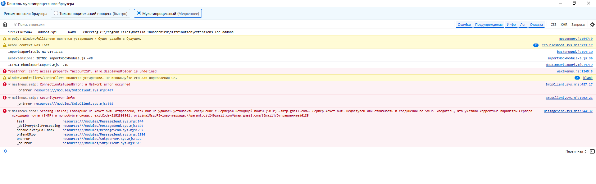 В первой половине дня не отправляются письма в thunderbird, во второй начинает работать. Проблема появилась 3 недели назад, причем по всем филиалам с разных IP адресов. При этом напрямую из браузера письма отправляются.