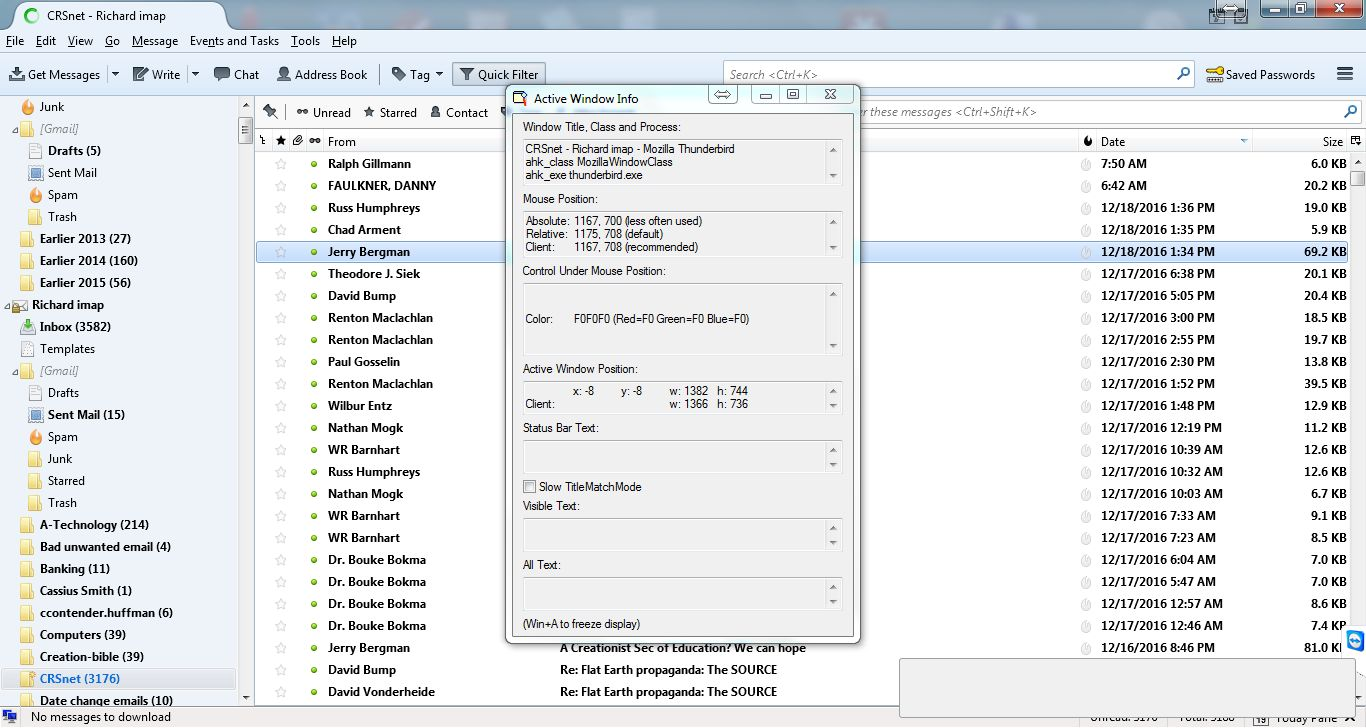 PS - The screen shot on the right below shows the blank white box info from windows, using a program that will show me such info for any window on the screen. The blank white box info is in a separate box on top of the thunderbird screen, which is in the background.