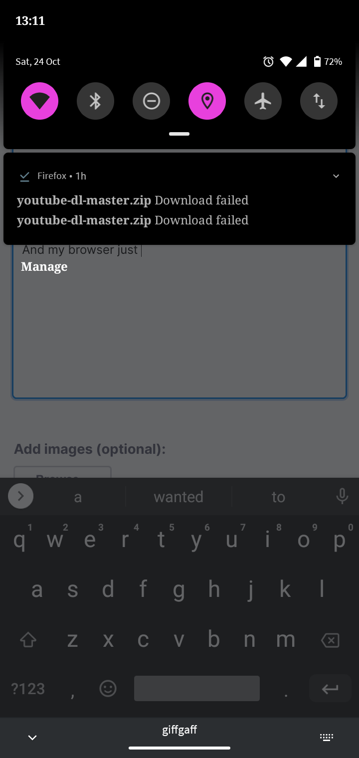 And my browser just can't do it. There's no files in /download (where they normally go) and as the pic shows, despite multiple attempts the download returns "failed"