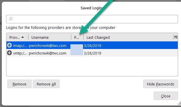 I closed TB on the laptop, thinking that was necessary when starting from scratch. But it asks for the password for mail.twc.com and I don't know it.