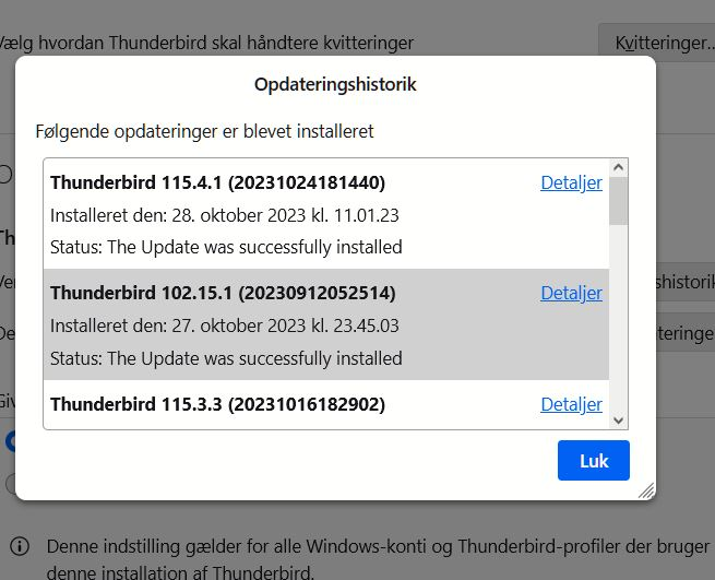 Here is what happened: oct.27 the mailsystem could not pick up mails from the server. Then I looked for an update and launched Thunderbird 102.15.1 (20230912052514) kl.23.45.03 successfully. To be able to launche it I was asked to make a new profile. After that the system looked very strange, and contacts and folders was gone. To day oct.28, I updated 115.4.1 (20231024181440). After that at look like the further (115.3.3). But still without the old folders and contacts. What can I do to get them back ? Y.f. Carsten Andersen Rødovre, Denmark