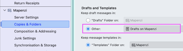 I know that it should NOT happen, nevertheless it happens and I don't know WHY. Try the following (no guarantee!): return to your Account Settings > "faulty" account > Copies & Folders > Drafts & Templates, check ◉ Other and select "Drafts on myaccoutname" (see picture)