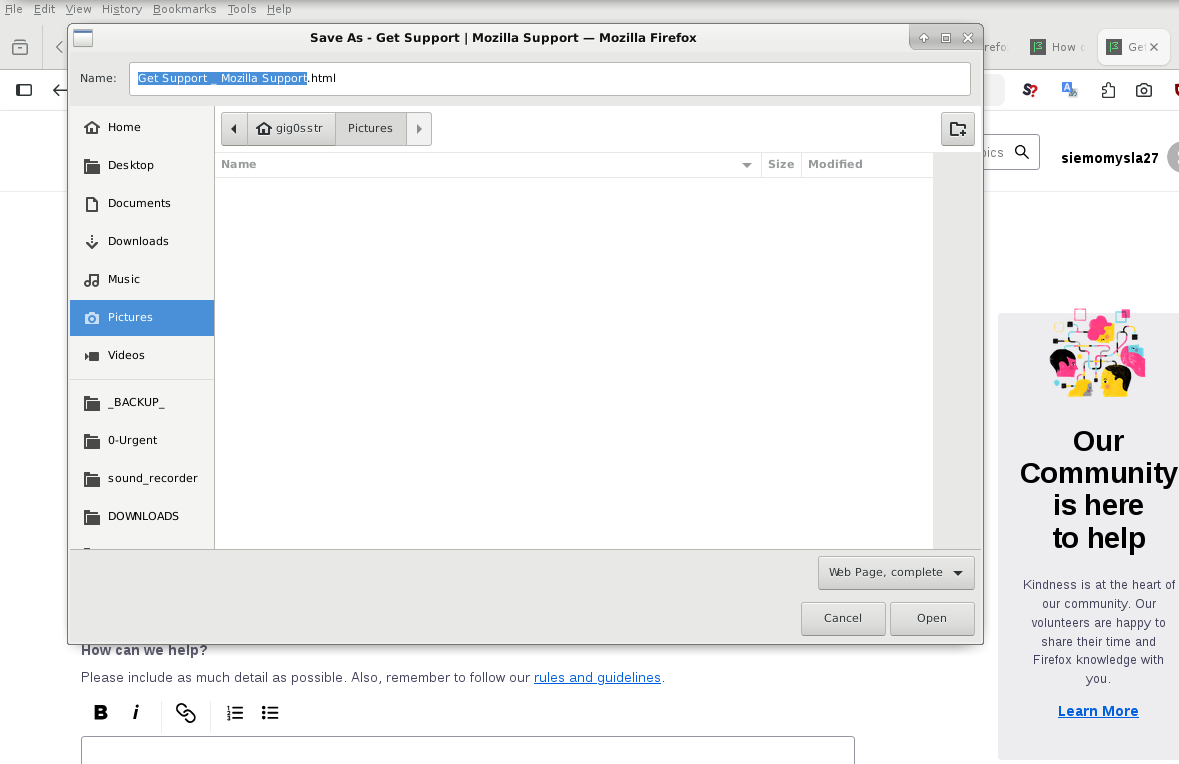 2. Whenever I try to save anything (image, website, Ctrl+S, print website to file, Ctrl+P, screenshots, same problem) my Firefox tries to "Open" something instead. I see dialog window with header SAVE, but the final button is labeled "Open" and after clicking it usually nothing happens. A haven't been able to save anything since this update. Only system-wide screenshots work for me now.