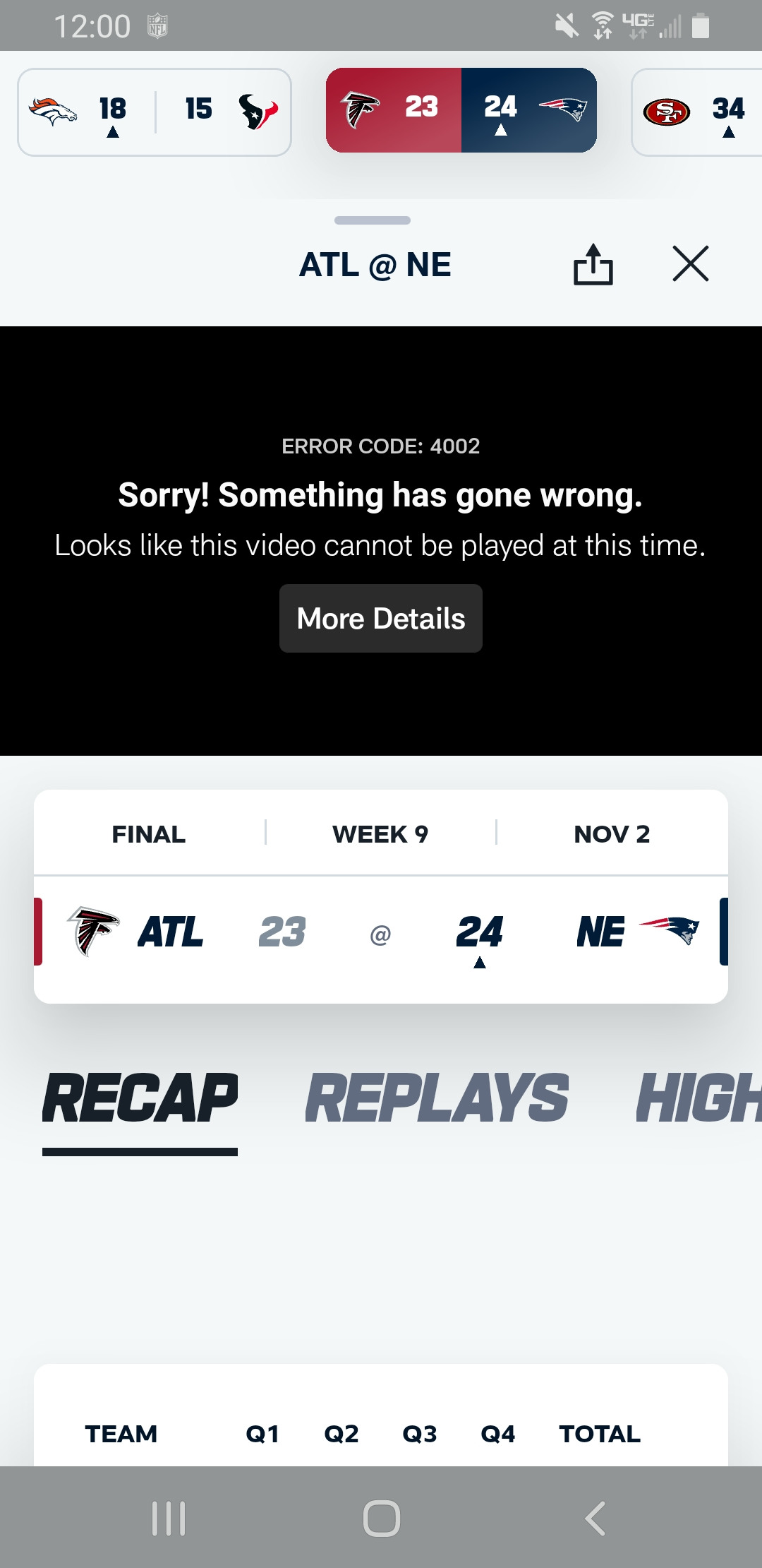 Cannot replay a football video on my subscription to NFL Enterprises for a game that already went final today. I cannot view either the full game or the condensed version of the video. The REPLAY selection is not working so I can view the video. This feature has worked prior to today's NFL broadcasting. Help me!!!!!