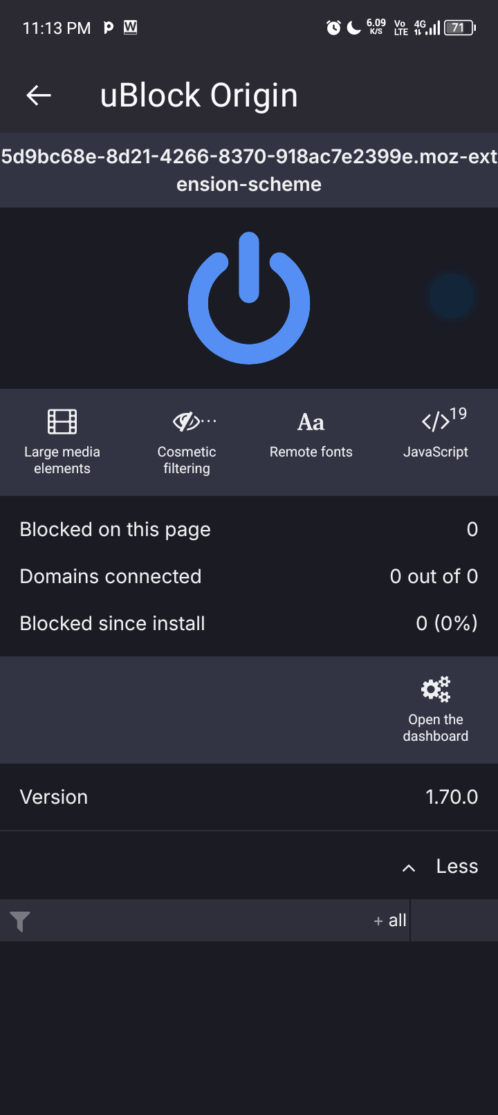 Try opening any Normal Website first, then tap the uBlock icon again and check if the counters start working. If it still stays at zero, UPDATE the filter lists from the dashboard and make sure the extension has all required permissions enabled in your browser.