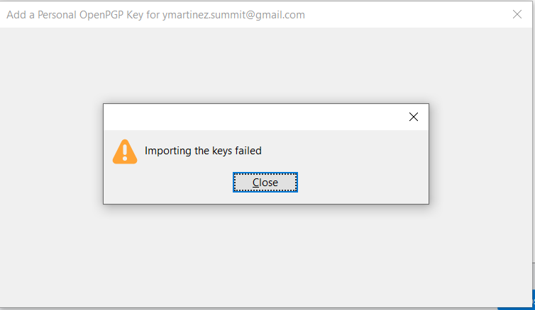When I try to import the backed up secret key using OpenPGP Key Manager it ultimately fails