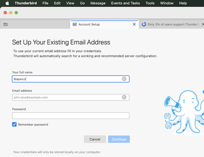 Can you show us a screen shot of the "empty screen" with TB's request "to update your account"? Is it similar to my screen shot below?