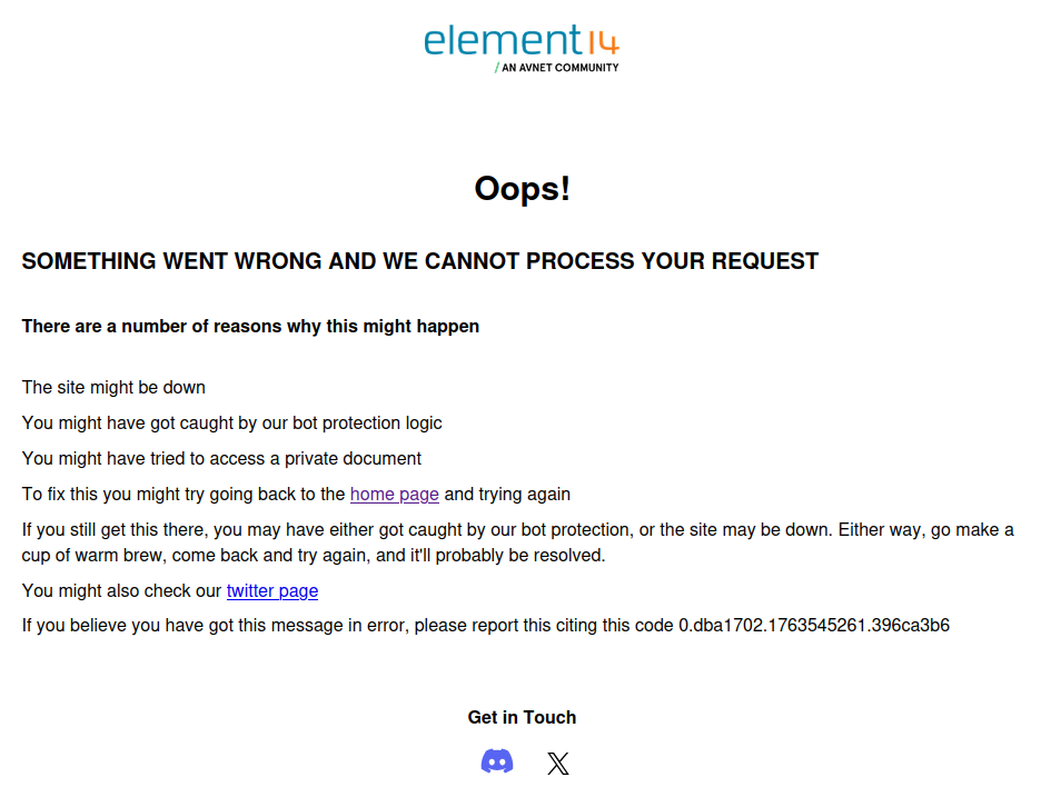 Thank you for taking the time to complete our survey. After some analysis, we have determined that your request to access the website was denied due to usage of non-standard browser. Please use the suggested browsers: Browser Support - Mouser and try again. If you have any other feedback/queries, please feel free to reach out to us.