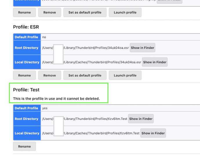 P.S. Instead of restarting th profile manager each time you can also uncheck ⬜︎ "Use the selected profile without asking at startup". This way each time you launch Thunderbird it will first open the profile manager inviting you to choose a profile....