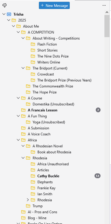 I only did a screenshot of the top part where the inbox is normally. She has hundreds of folders :)) Local Folders appears right at the bottom of the list. This is one of the problems that started all this - after an update a short while ago the inbox disappeared. To solve the problem I reloaded one of the previous versions which fixed it. Unfortunately the latest version of TB does not allow this any longer.
