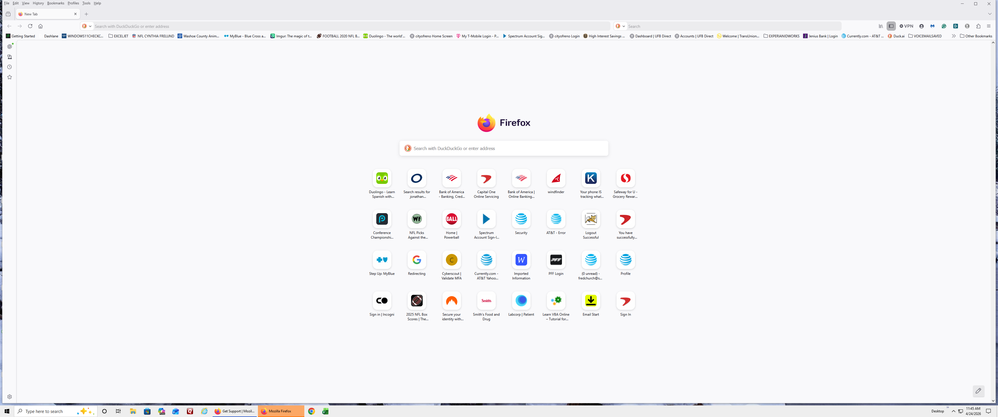 I assume OS means operating system: Windows 10. Not sure what FF is. I assume Firefox version 150.0(64-bit) I believe there was a Windows update during this period. I don't believe there was an update to Firefox. All that I have done is a workaround to access my saved websites. I click on FF tab, it opens with the one icon home page. I close it and reopen. Then I get a notice that says: That FF is open, and it has to be closed click here. I click it, and FF closes. I then click on my FF tab, and it opens to my home page.