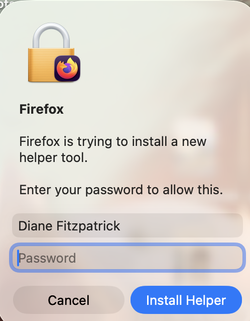 After the last update on my desktop browser, my password was requested in order to "install a new helper tool." But it isn't accepting my password, even after I double checked what it was. And there's no Change Password link.