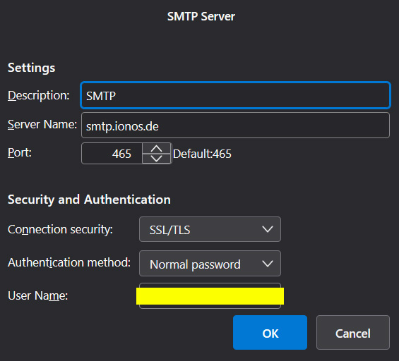__________________ Sending of the message failed. The message could not be sent because connecting to Outgoing server (SMTP) smtp.ionos.de failed. The server may be unavailable or is refusing SMTP connections. Please verify that your Outgoing server (SMTP) settings are correct and try again. __________________