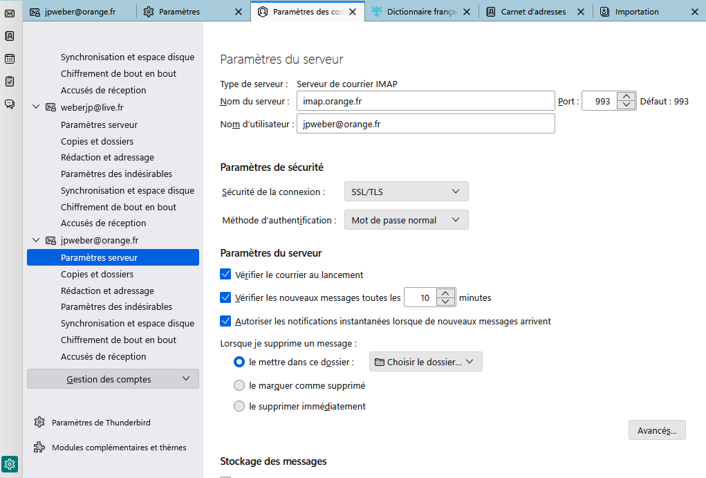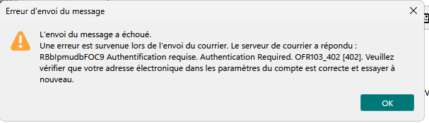 Thunderbird. orange. send mail not possible