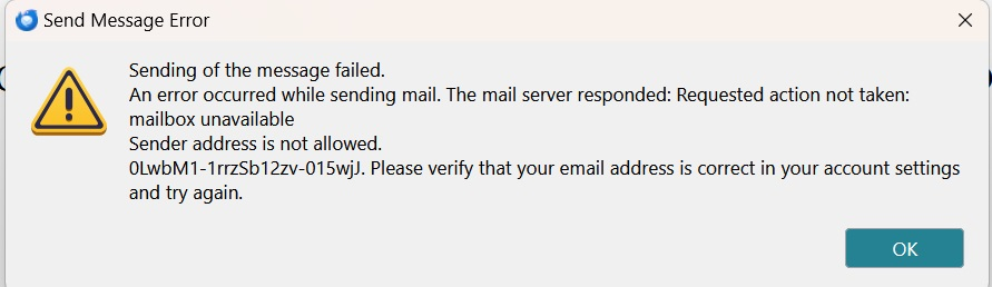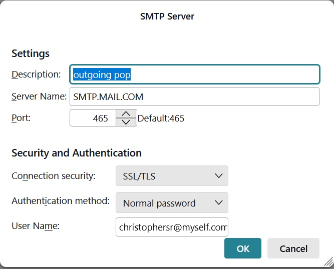 I tried 587. Timed out. My server says they require 465 for outgoing. I uploaded all the msgs I get. With support on the phone they tell me all of the items are correct. Port, settings, email, password are all correct according to them.