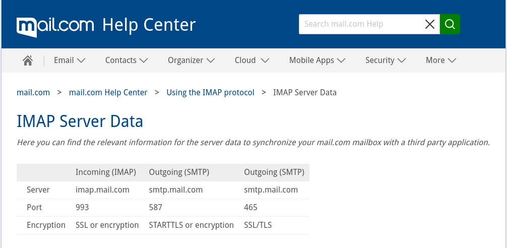Ok, I have read several posts, and contacted support at mail.com. I have tried the fixes I have found. mail.com says I have it all set right. They have tested my account from another computer. They said they DO support Thunderbird.