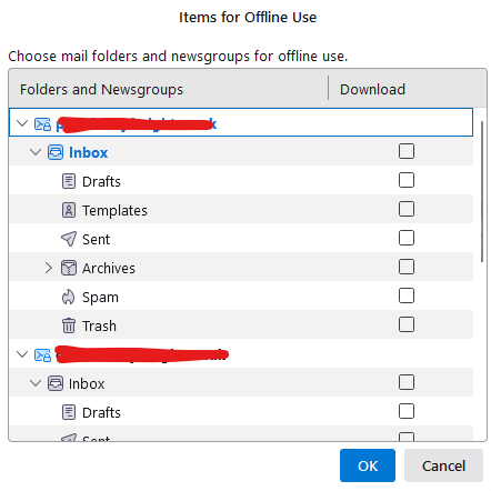 Thunderbird storing offline emails