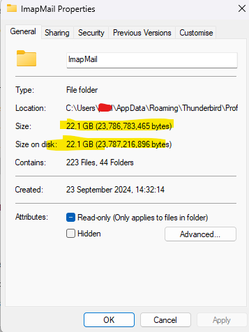 Thunderbird is taking up around 40gb on my computer with emails that have been downloaded for offline viewing.