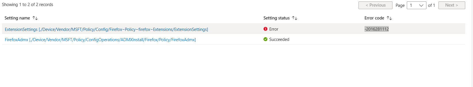 Outcome is: Setting name: ExtensionSettings [./Device/Vendor/MSFT/Policy/Config/Firefox~Policy~firefox~Extensions/ExtensionSettings] ----error code -2016281112