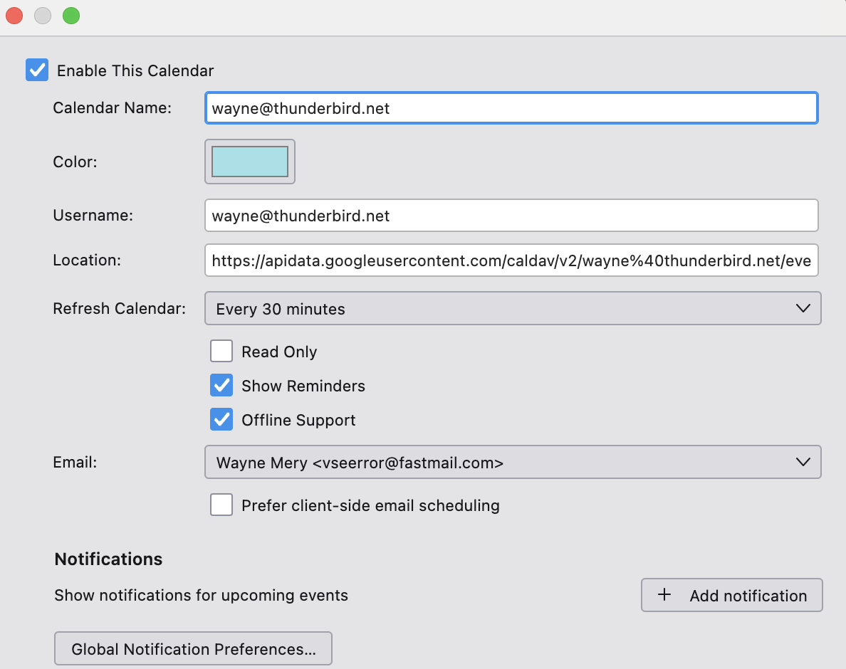 Please post a screen shot of your calendar properties - access by right click on your calendar and pick properties.