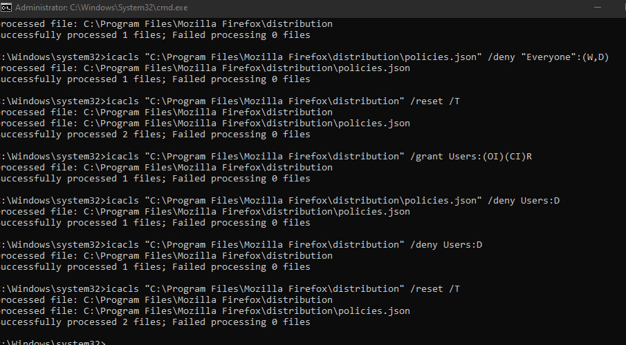 Forgot to mention, after every update, my policies folder and file are deleted. Mozilla is deleting my policies.