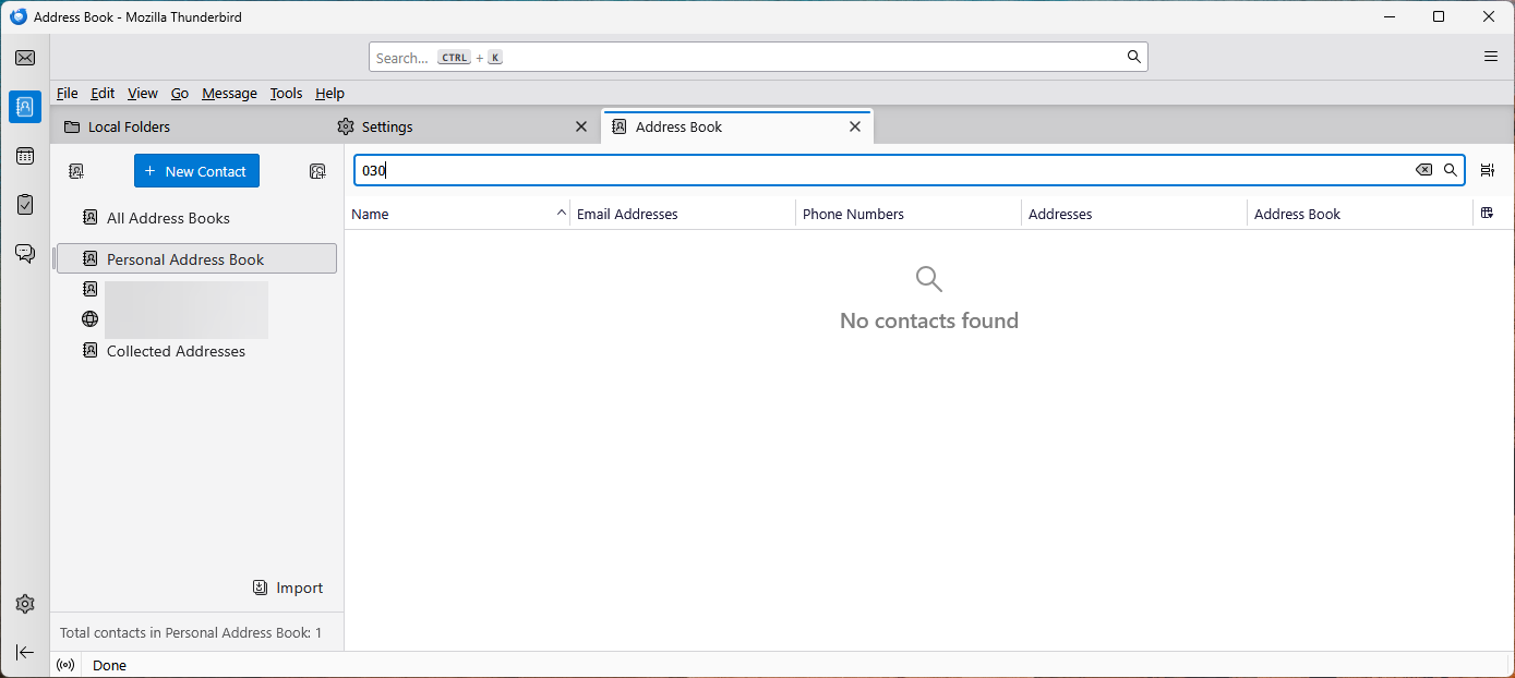 Search for Phone Number 030 shows: No contacts found - which is not true! Search for Address City Berlin shows: No contacts found - which is not true!