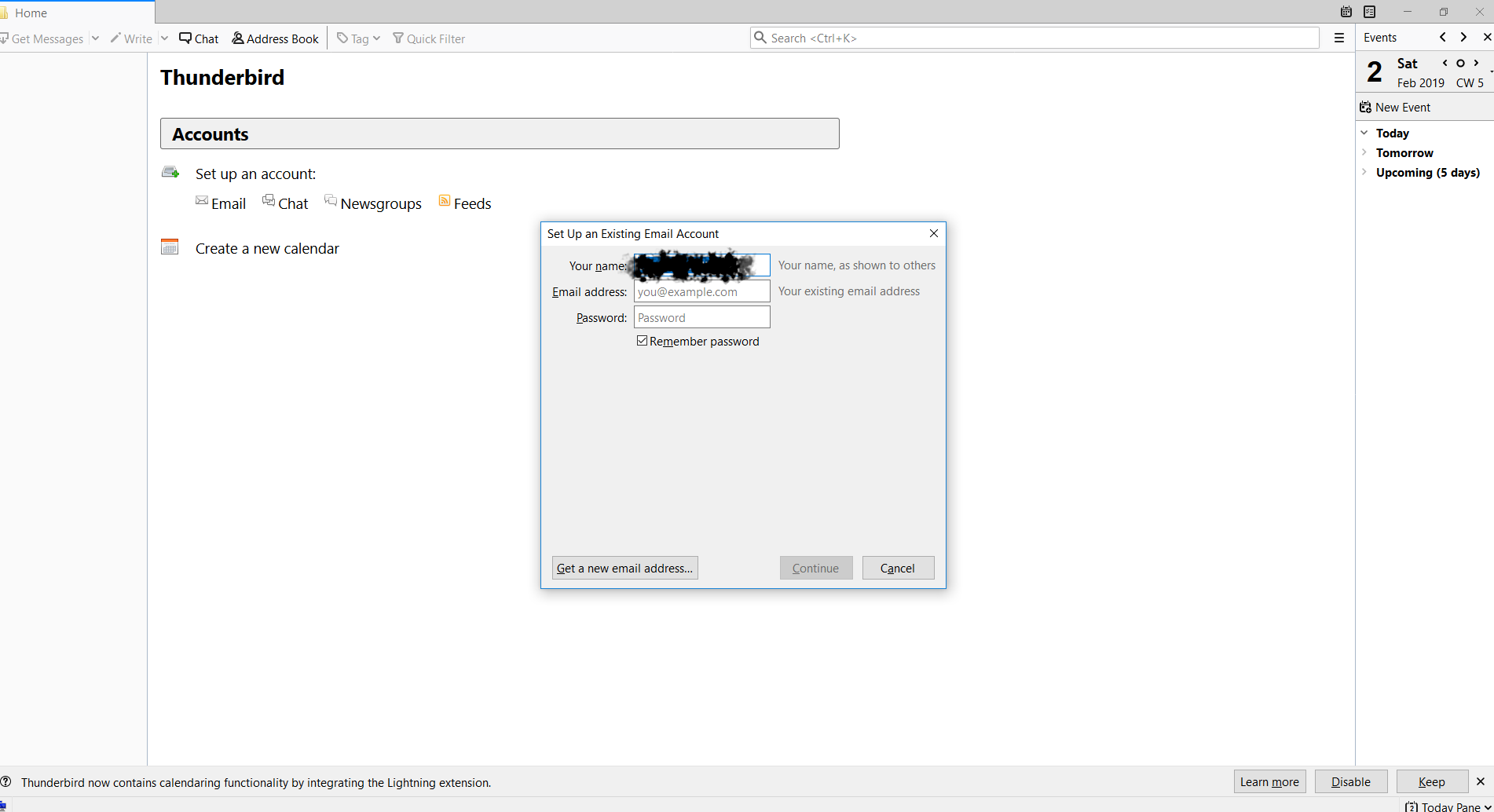 I opened my TBird account tonight and to my shock, there was nothing there. Please see screenshot #1.