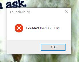 XPCOM indicates a corrupted installation. I suggest starting over.