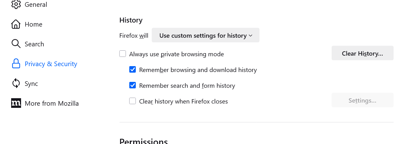 Is the first image your desktop? If so, okay. Privacy and History Settings.