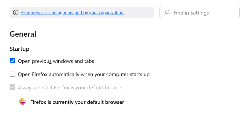I see that your browser is being managed. see copy of your screenshot Have a look at this link to remove that. https://winaero.com/remove-your-browser-is-being-managed-by-your-organization-from-firefox/