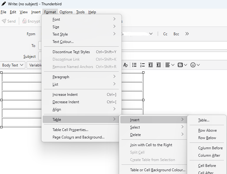 I need to edit and add a column to an information table with 6 columns and about 12 rows of text & numeric information in a Thunderbird E-mail. Thank You.