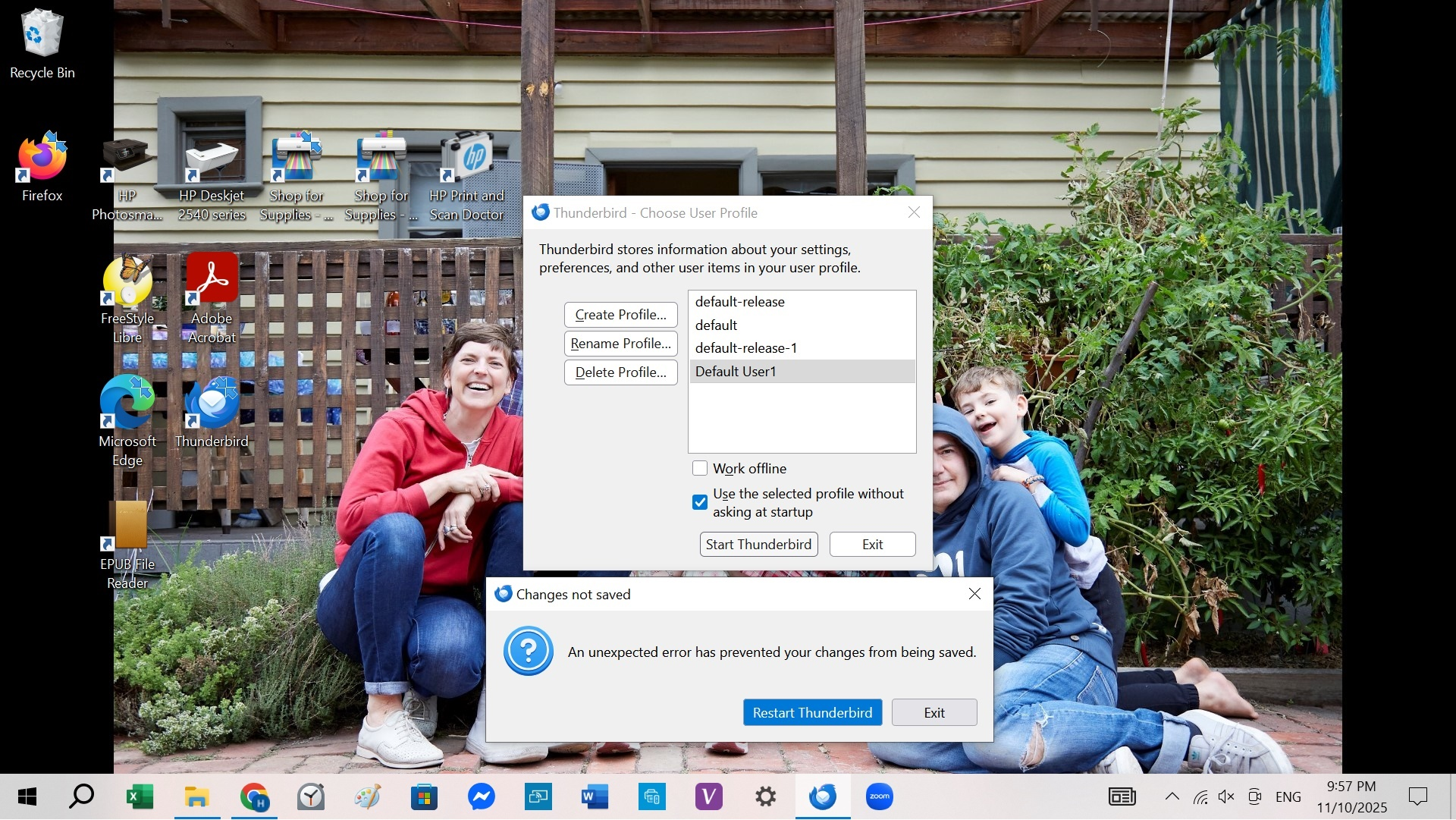 Hi Ed, I have followed your instructions using the ProjectManager approach. It seemed to be progressing well until i pressed "Start Thunderbird" which triggered a pop-up box which stated "an unexpected error has prevented your changes from being saved". I repeated this several times but could get no further. Screen grab attached. Thanks, Malcolm