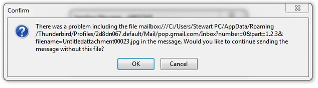 "There was a problem including the file mailbox:///c:/Users/my name/appdate/roaming/thunderbird/prpfiles/2d8dn067.default/mail/pop.gmail.com.........."