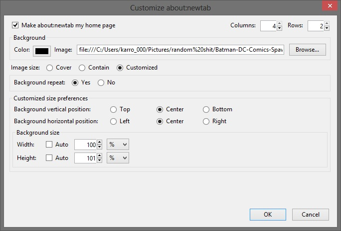 About newtab is cutting out the bottom of my background picture, how can I fix this?