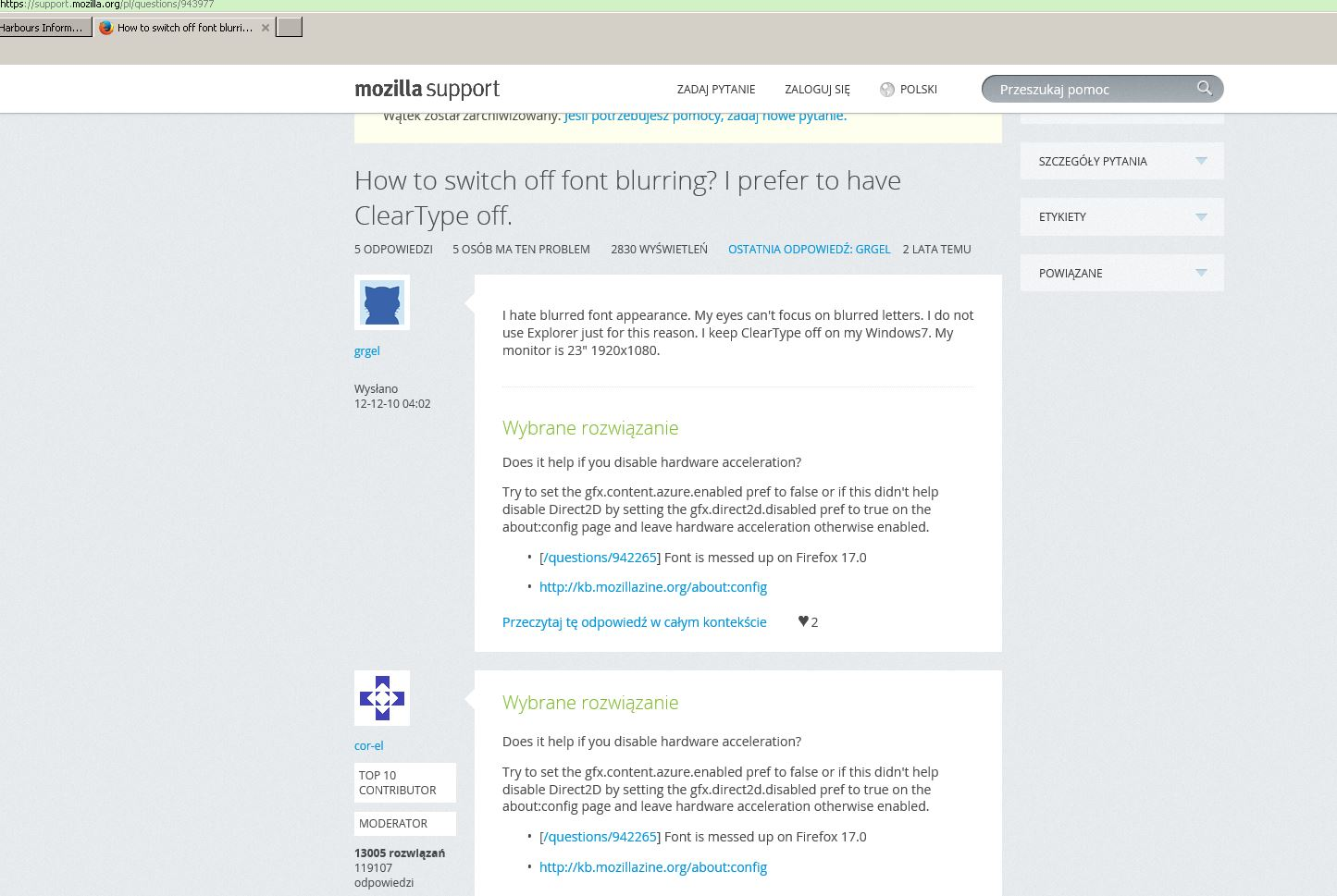 some websites look just awful on last firefox. see screenshots on IE and Firefox. The difference is clear to see. I hope you guys can solve this with next update .... ??? & also hope that you have abandoned cleartype fonts for good ..... or ? (this was the main reason why I switched to firefox from IE)