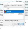 But, Thunderbird still continues to ask every time for a browser choice. The first choice does open in the currently open Firefox and does not open a new window. How do I get it to stop asking please?
