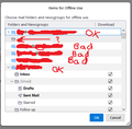 4 Mail Accounts lost/corrupted in Thunderbird 102 update, Offline folder subscriptions no longer turned on, mail is checked but doesn't appear