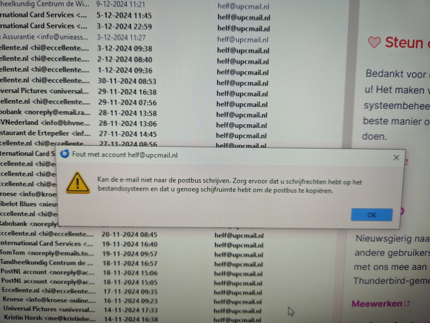 e-mail komt niet meer binnen alleen oude mails die ik verwijderd hebt?