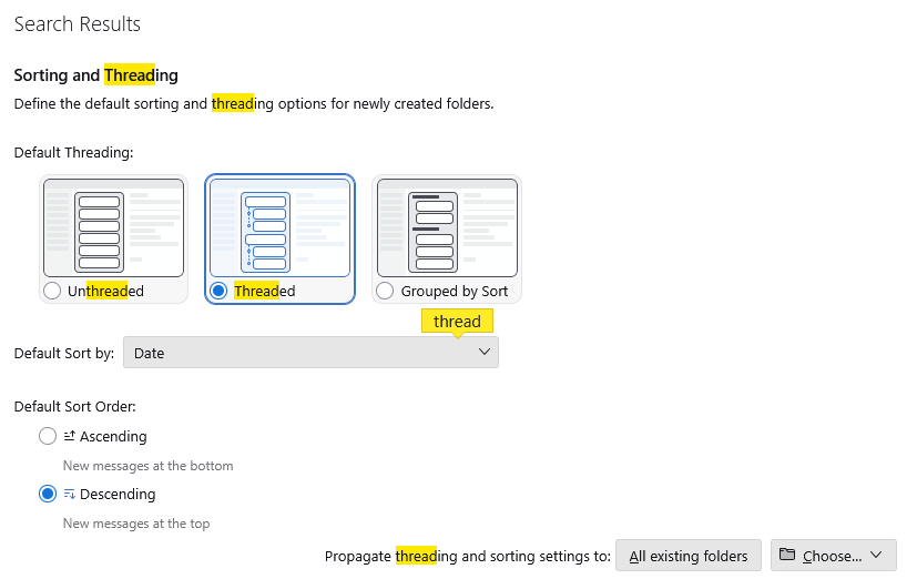 Are either of these possible with config editor or something? The threaded conversation view options seem very limited. Along with sorting and how they are displayed by date or order.