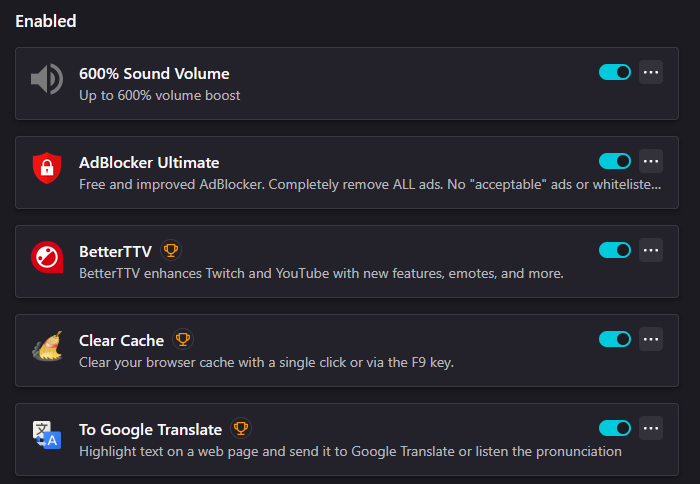 i am sending you a screenshot of my addons. I am using the windows security, I do not use another software
