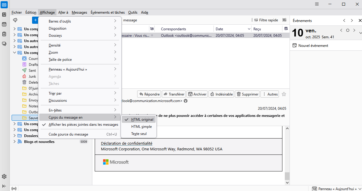 Please check. Menu bar -> View -> Message body as -> HTML original