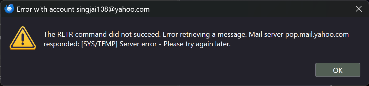 The RETR command did not succeed. UPDATE
