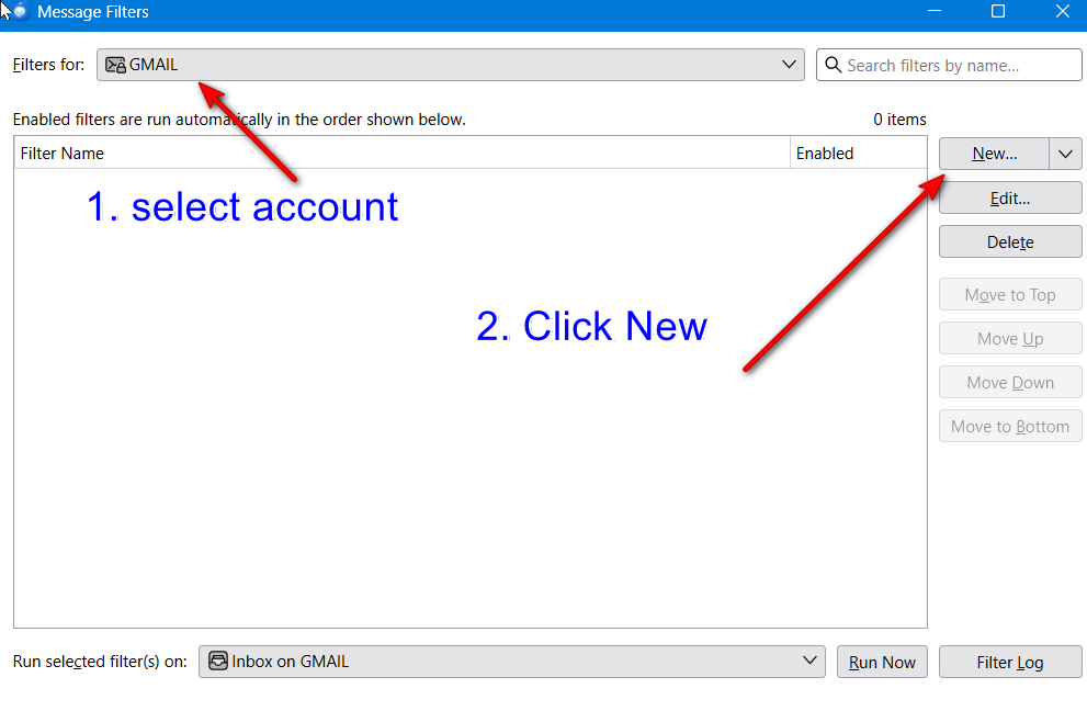I am trying to set up filters but user guide instructions are different than what comes up on the screen.