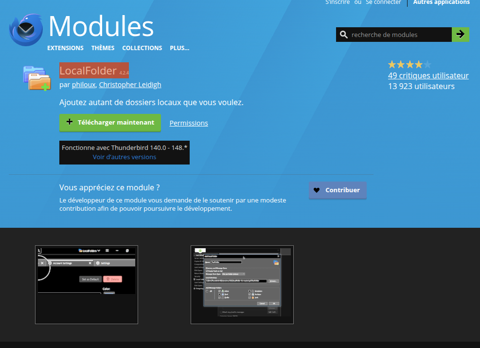 Oui j'ai déjà fait ça comme j'ai l'habitude de le faire quand il y a des changements de machine ou de versions. Là, ça ne fonctionne pas ! Ce "Local Folders" je l'ai créé il y a plusieurs années et contient tous mes mails sauvegardés rangés par dossier. Jusqu'ici ça à toujours fonctionné ! Soit c'est un bug ou il y a quelle chose à modifier quelque part que je ne connais pas malheureusement ...