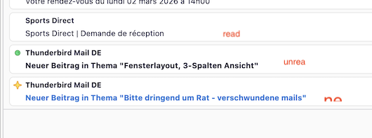 Oh yes, now I see that you use the cards view! Thanks for the screen shot. I am still a veteran Thunderbird user and have been staying with the table view. So I didn't imagine the blue subject line in new messages (and that's why I had profoundly modified my initial reply which concerned table view). The blue font colour plus the orange rhomb before the subject is the default display (or design) for new messages. As soon as you click on a new message the colour changes to black and font-weight to normal. If you don't click on new messages - leaving them unread - and restart Thunderbird (or change folders) those messages change status and become simple unread messages, identifiable by the green dot and bold black font. (first image) Back to your question to extend the blue highlight of the subject line to other messages: I don't know such a built-in feature. The only feature Thunderbird provides to distinguish or categorise messages are the message tags (important, work, personal, ......) . Yet in cards view those tags are very discreet, unlike tags in table view.