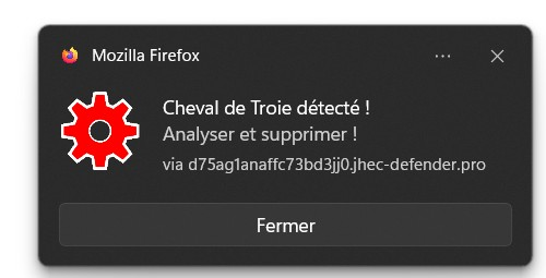 Bonjour Je suis "harcelé" par des notifications (cf fichier joint) qui m'annonce, un virus detecté, un cheval de Troie, une alerte système, une erreur critique... en m'indiquant toujours via d75ag1anaffc73bd3jj0.jhec-defender.pro J'ai beau cliquer, je n'obtiens rien sauf assez souvent une connexion à Avast (qui n'est pas installé sur ma machine !) et qui me détecte aussitôt de 3 à 5 virus... mais qui ne être supprimé que par une version payante d'Avast Réelle menace ou publicité agressive ? Comment se débarrasser de cela sans bloquer toutes les notifications de Windows Defender ? Cordialement