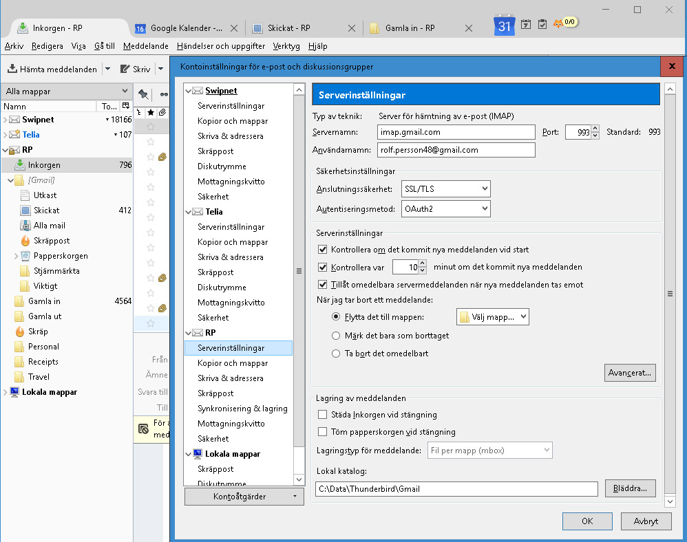 When I start, Thunderbird begins to load all old messages to the inbox, sent message. Because there are many messages it takes a very long time, often 10-15 minutes before it is ready Other folders I created (Old in Old sent ) are not updated without right-clicking and choosing "Open in new tab" and then starts for each such a time-consuming download